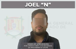 La Fiscalía General del estado de Nayarit informa que en coordinación con la Fiscalía General de Jalisco, fue cumplimentada una orden de aprehensión en la ciudad de Guadalajara contra Joel “N”, por su probable responsabilidad en el delito de operaciones con recursos de procedencia ilícita, en agravio de la sociedad.