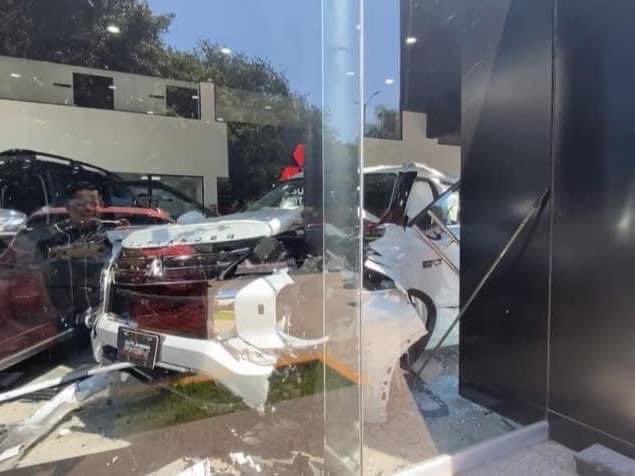 Este lunes, 28 de octubre, un accidente se registró al interior de una agencia de vehículos en Tepic, Nayarit, cuando una mujer interesada en adquirir una camioneta, accidentalmente, chocó el vehículoprovocando que se desplazara sin control dentro del edificio y colisionara contra un poste. El incidente dejó dos personas lesionadas y tres vehículos dañados.